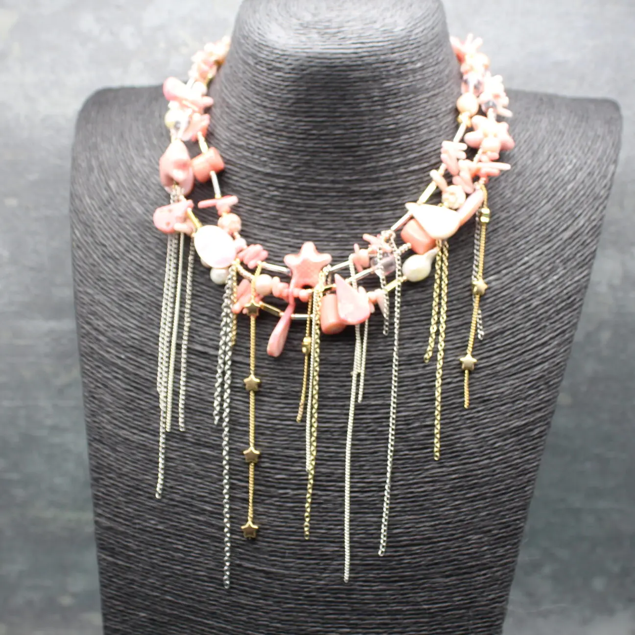 Колье из натурального коралла, перламутра, жемчуга, керамики, цепочек.