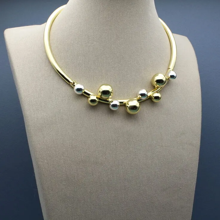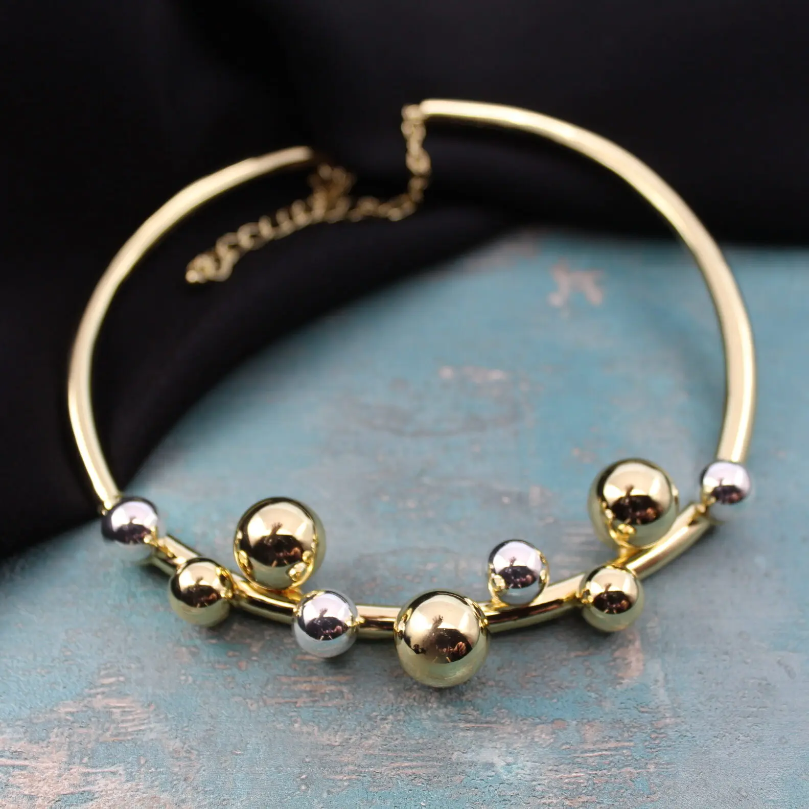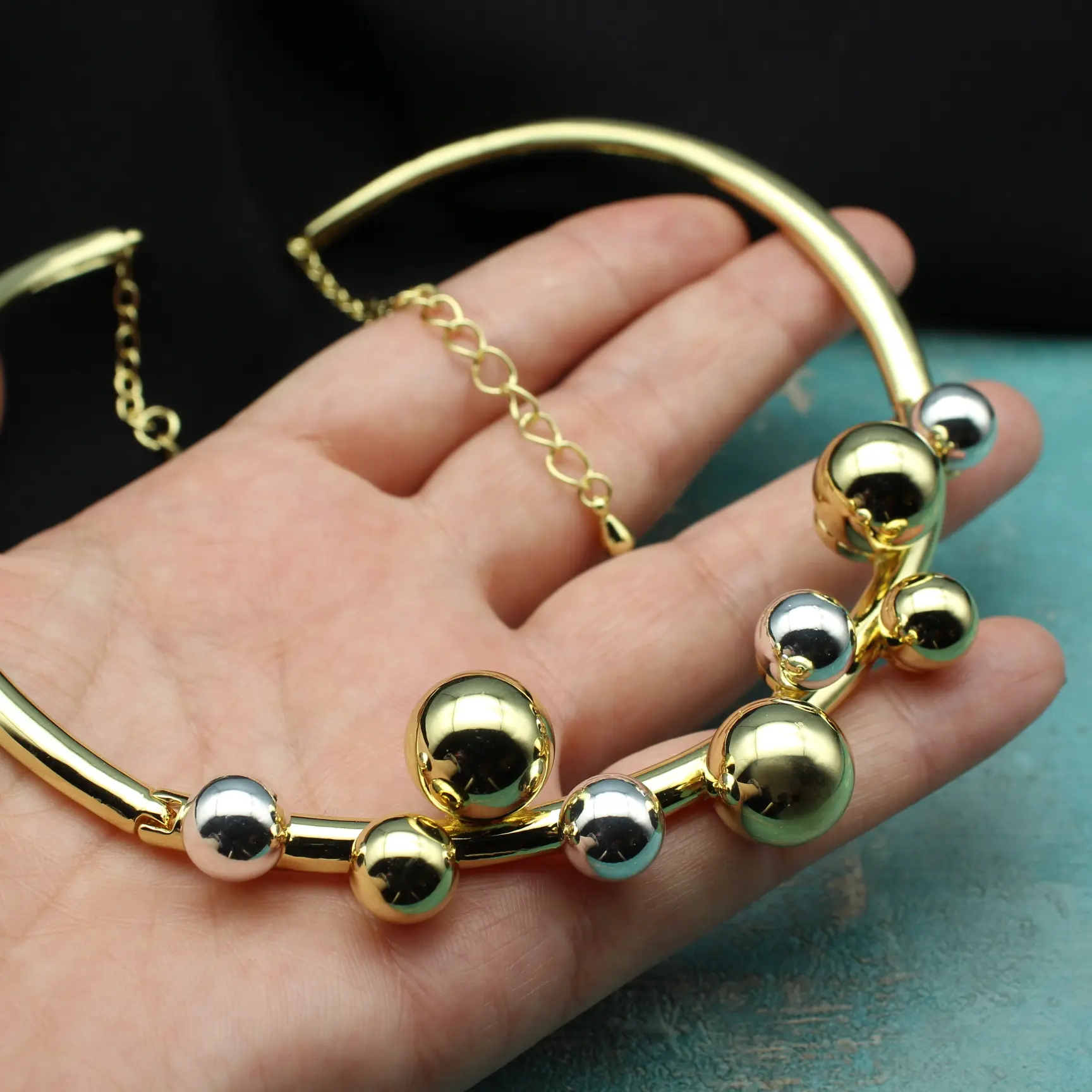 Ожерелье чокер из позолоченных и посеребренных элементов в виде шариков.