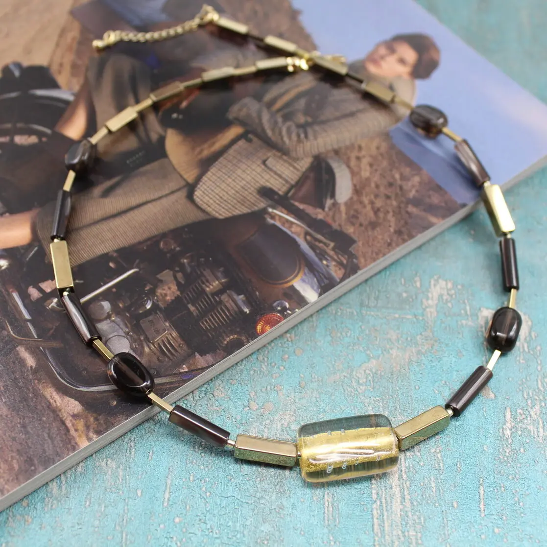 Колье из венецианского стекла, натурального раухтопаза (дымчатого кварца), натурального перламутра, позолоченной и фурнитуры.