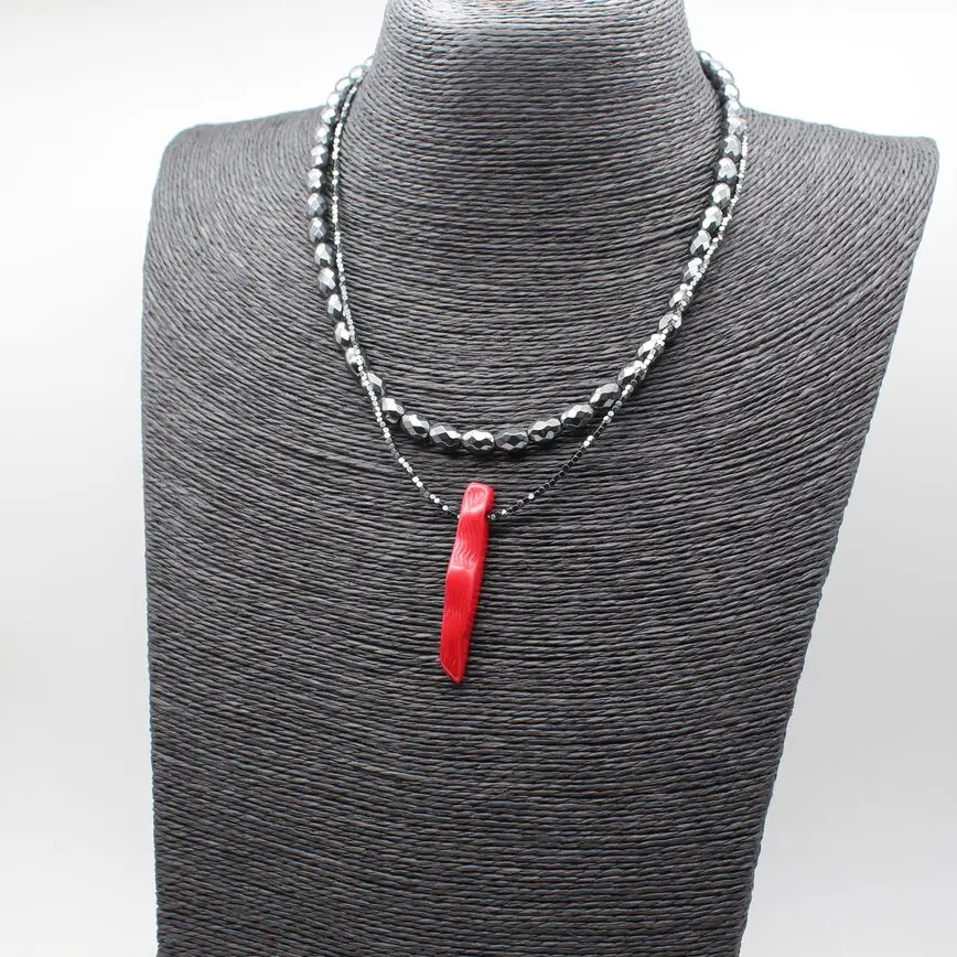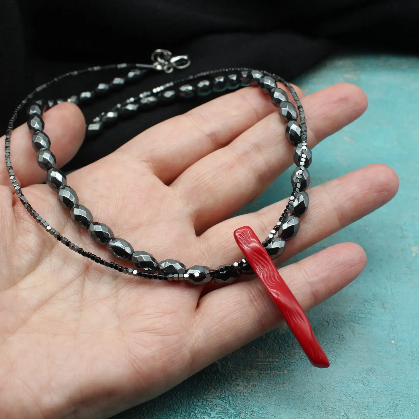 Лаконичное, при этом оригинальное украшение, главными акцентами которого являются спилы природного коралла!