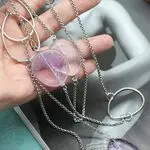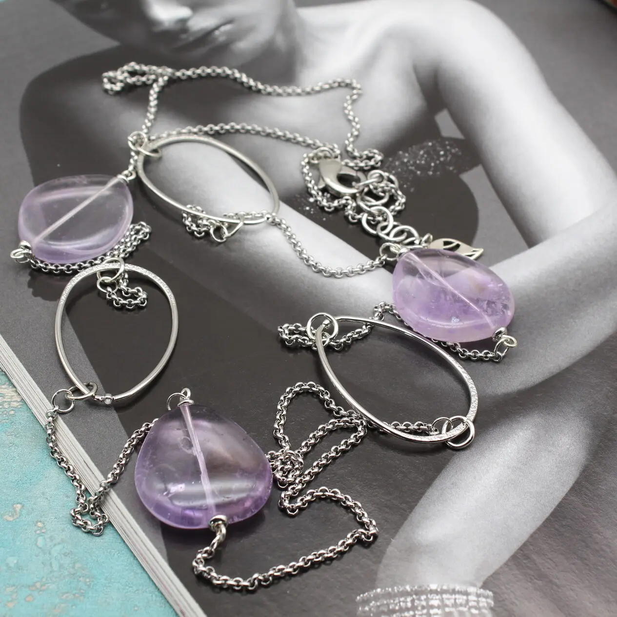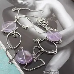 Стильное колье с крупными натуральными сиреневыми аметистами, серебряной фурнитурой!