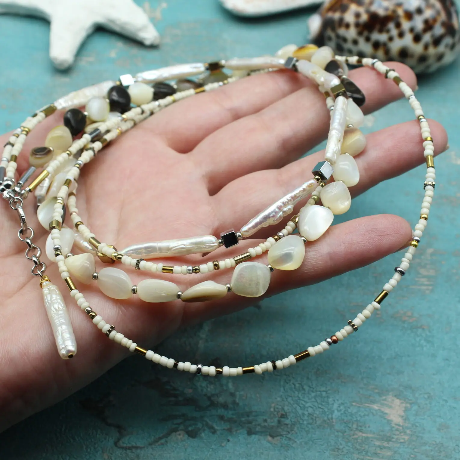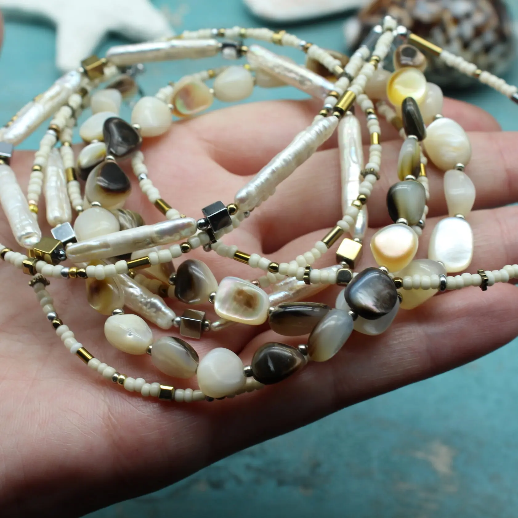 Колье из натурального перламутра, жемчуга "бива", гематита.