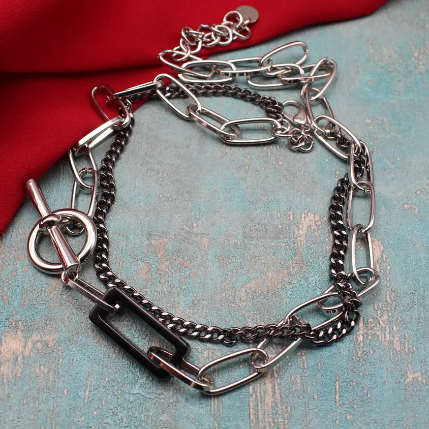 Колье из стильных цепочек с родированным покрытием (р-ка Корея).