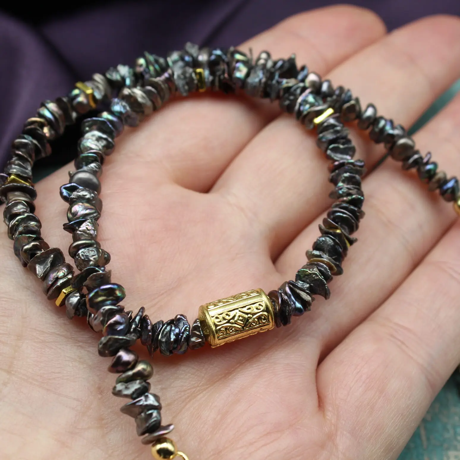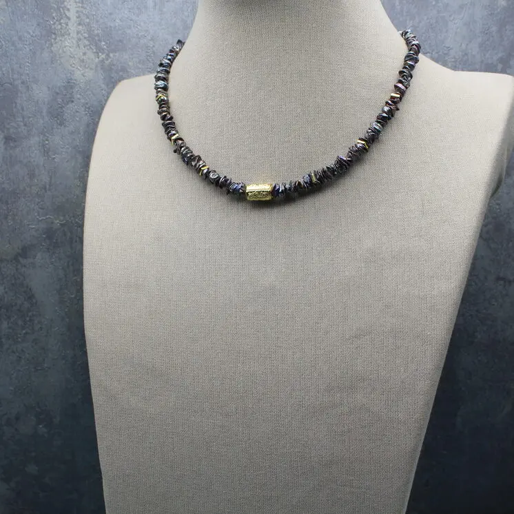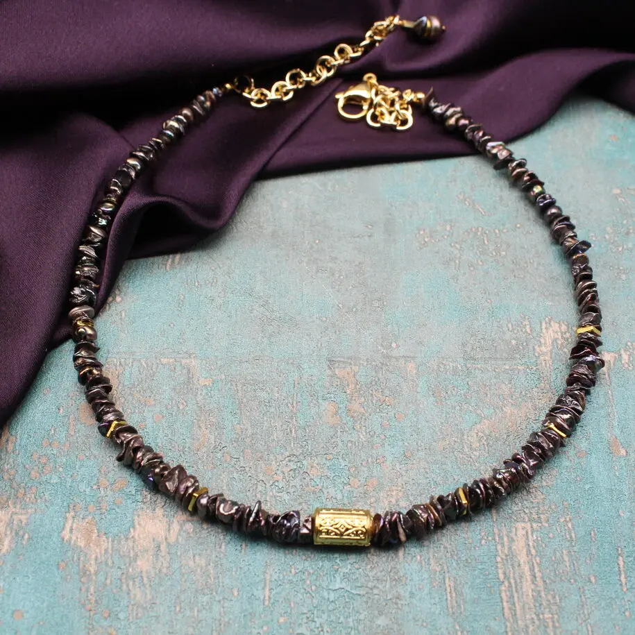 Колье чокер из темного жемчуга кейши, позолоченной латуни 24К.