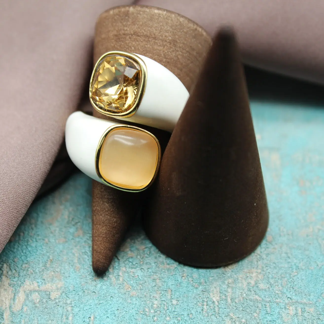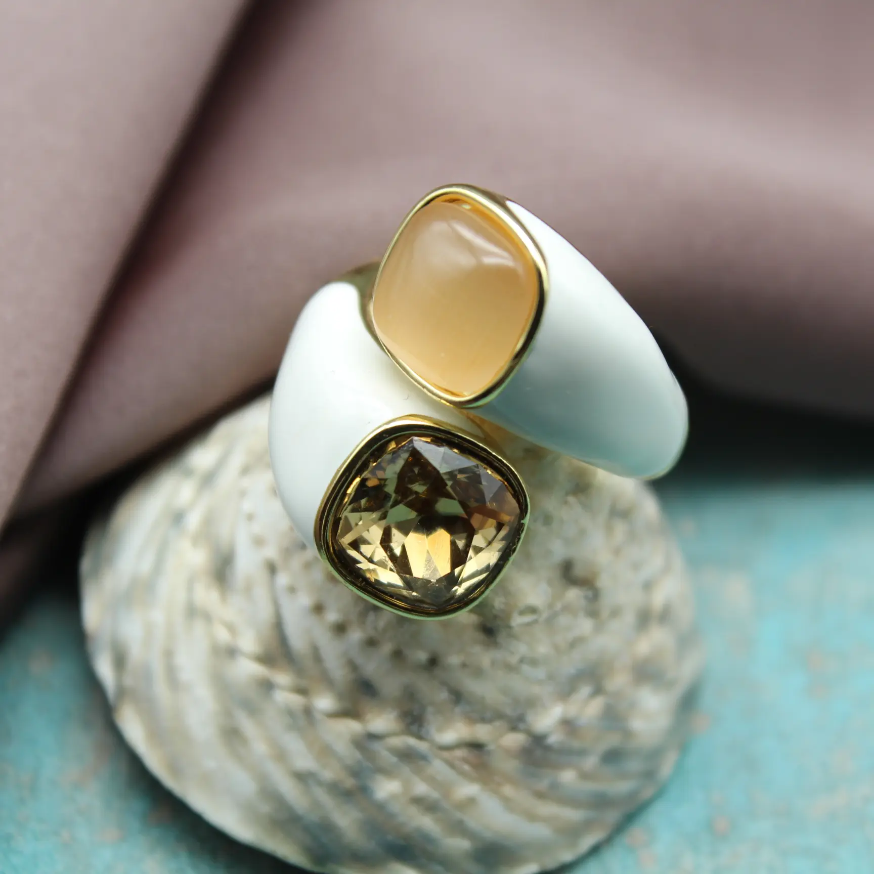 Кольцо с эмалью, вставками из кристалла и кабашона кошачьего глаза.