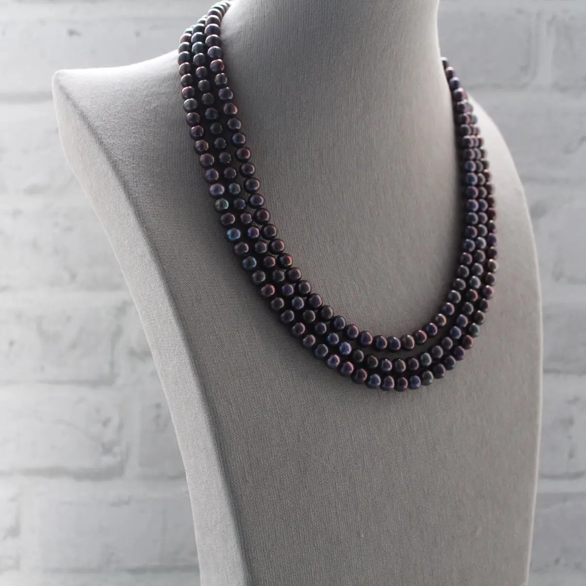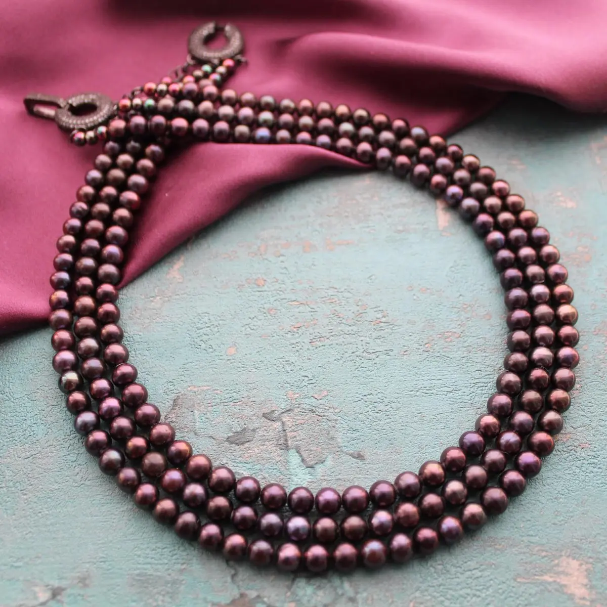 Украшение трехрядное, отлично держит форму, идеально подогнаны жемчужины и длины нитей - смотрится как сплошное полотно!