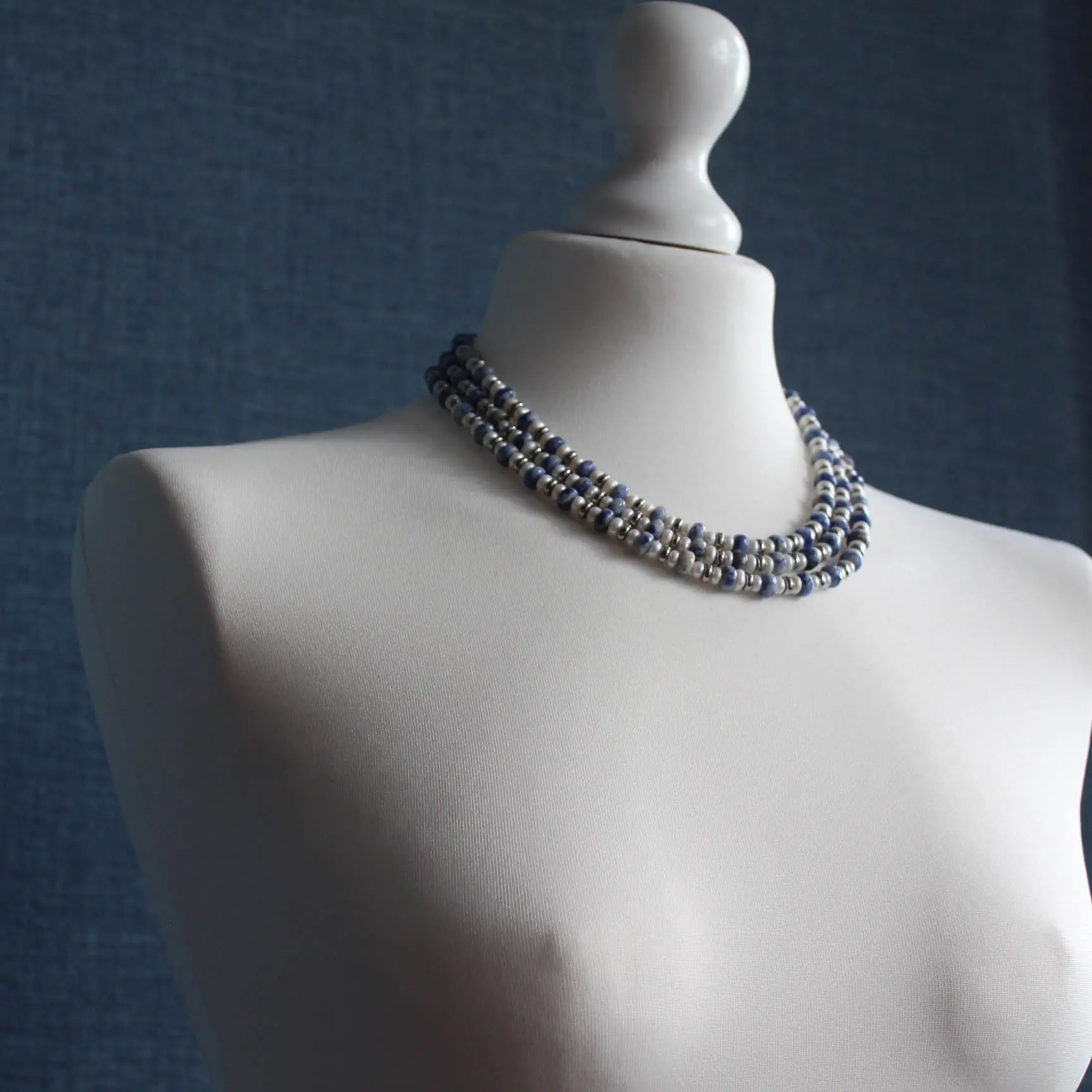 Украшение трехрядное, отлично держит форму, идеально подогнаны камни и длины нитей - смотрится как сплошное полотно!