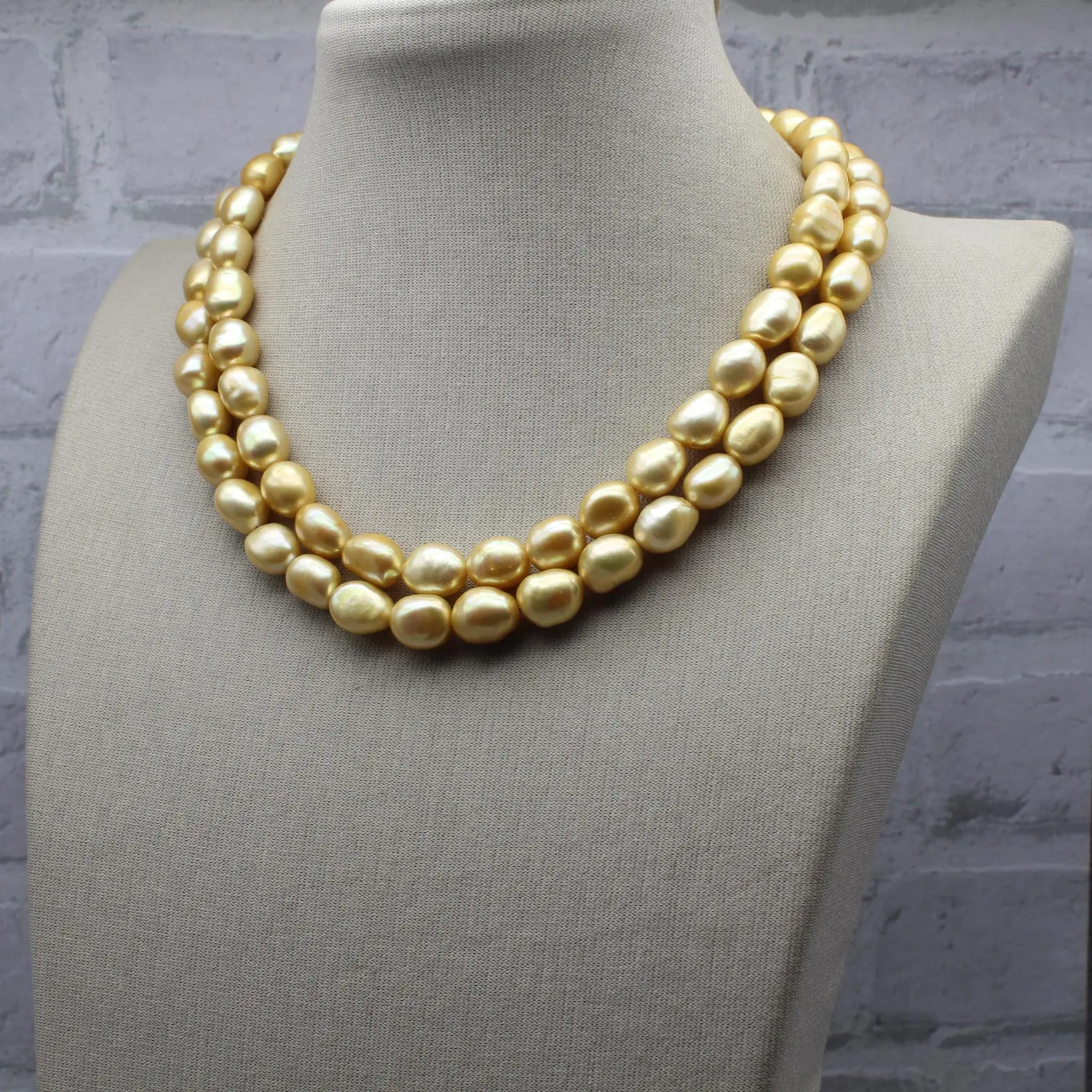 Исключительное качество и потрясающий золотистый оттенок жемчужин смотрится изумительно, словно золотые слитки!