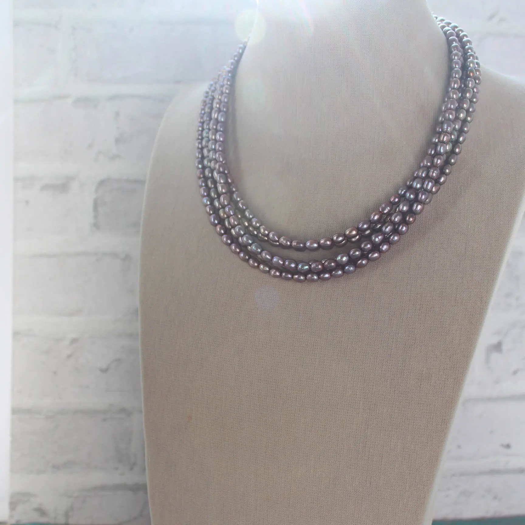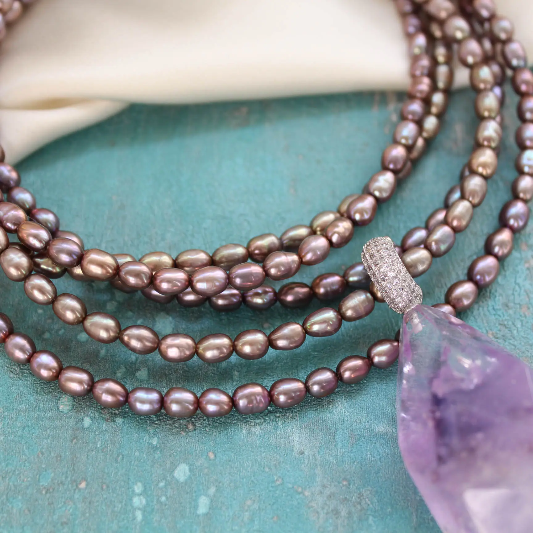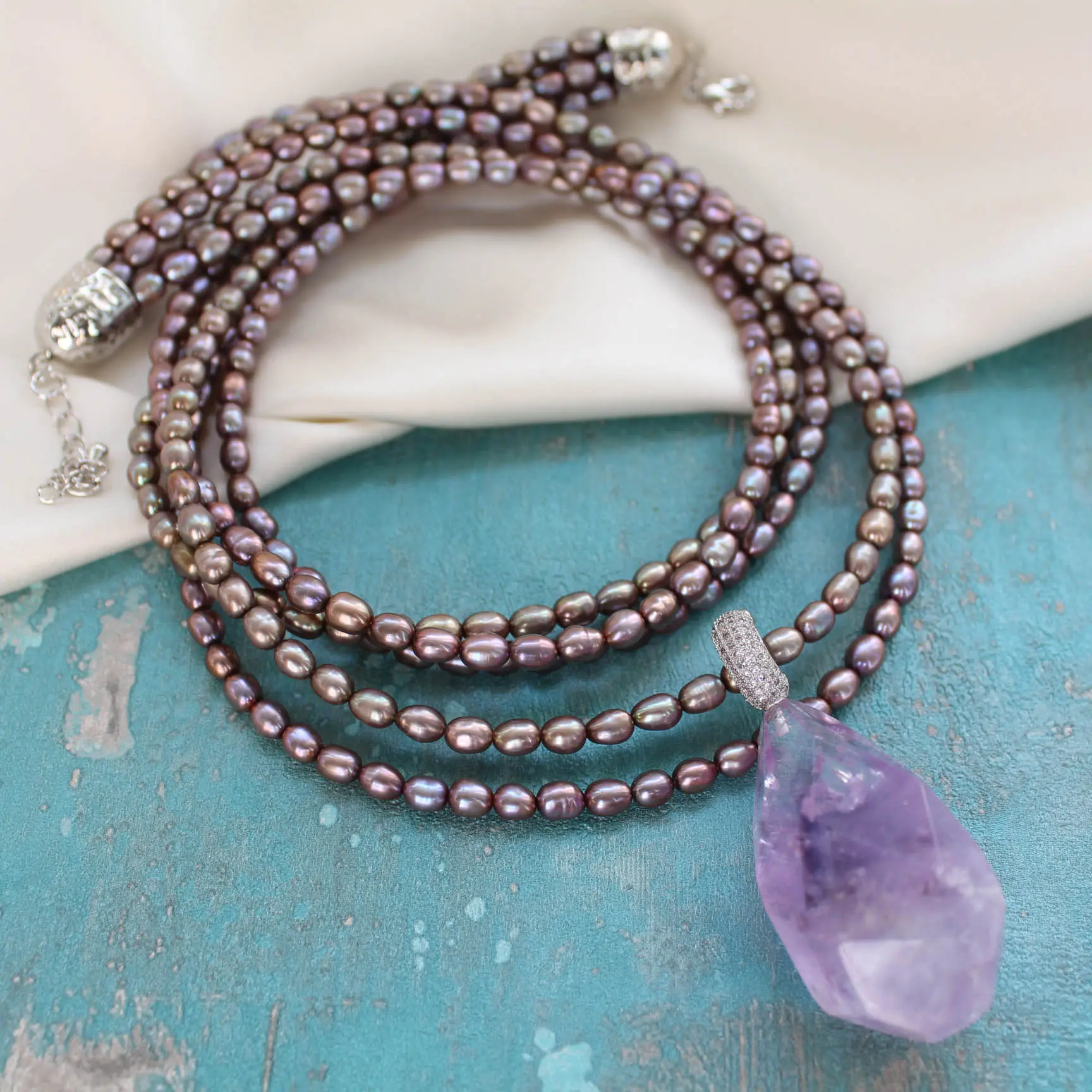 Ожерелье из натурального сиреневого жемчуга, аметиста.