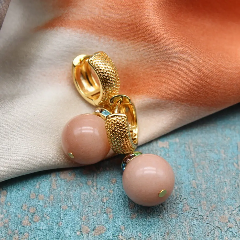 Серьги из солнечного камня (Байкал), латуни, позолоты 24К, цветные цирконы.