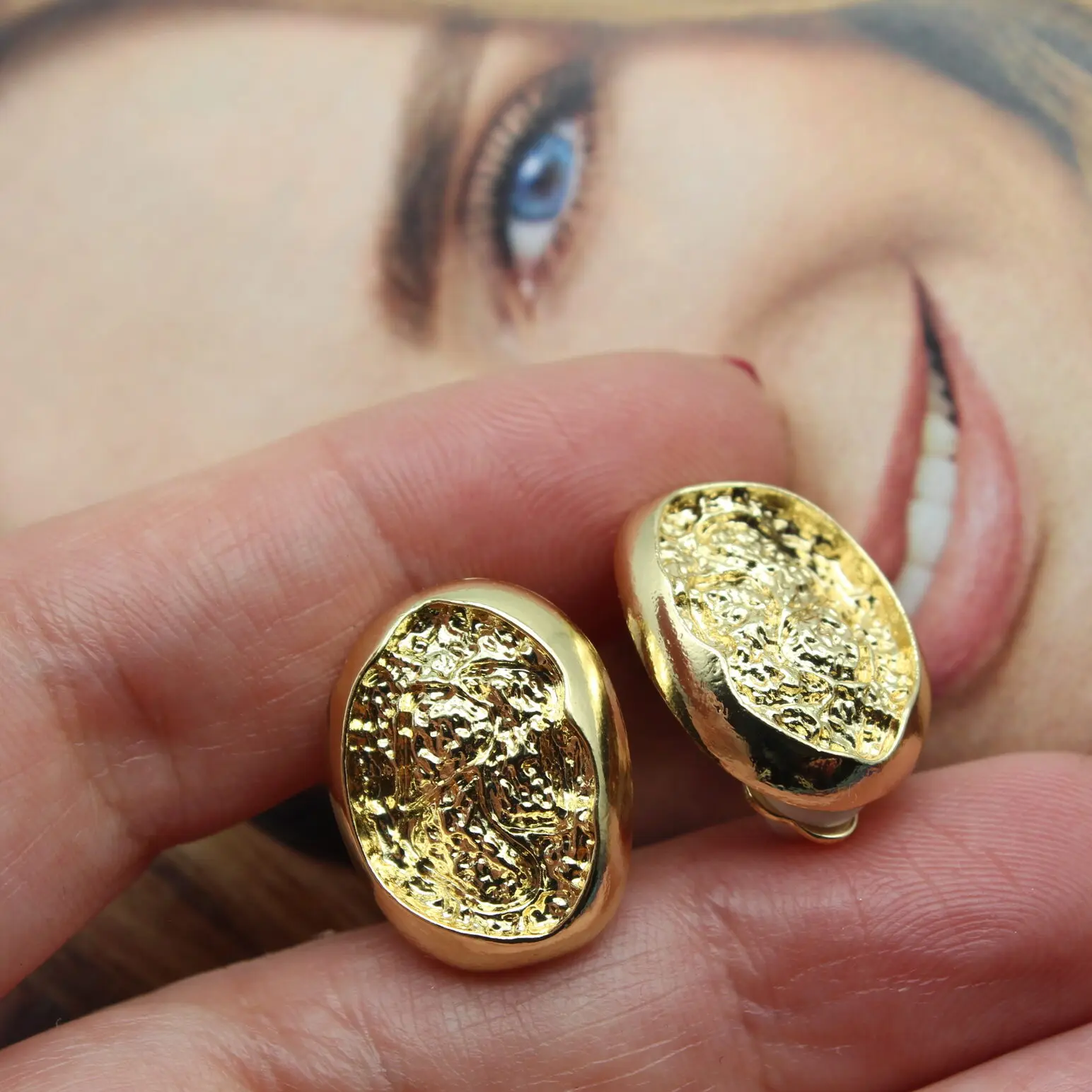 Серьги клипсы из позолоченного фактурного металла (р-ка Корея). Очень качественное, стойкое покрытие!