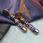 Швензы-гвоздики ручной работы из латуни с эмалью в виде стилизованного лабиринта.