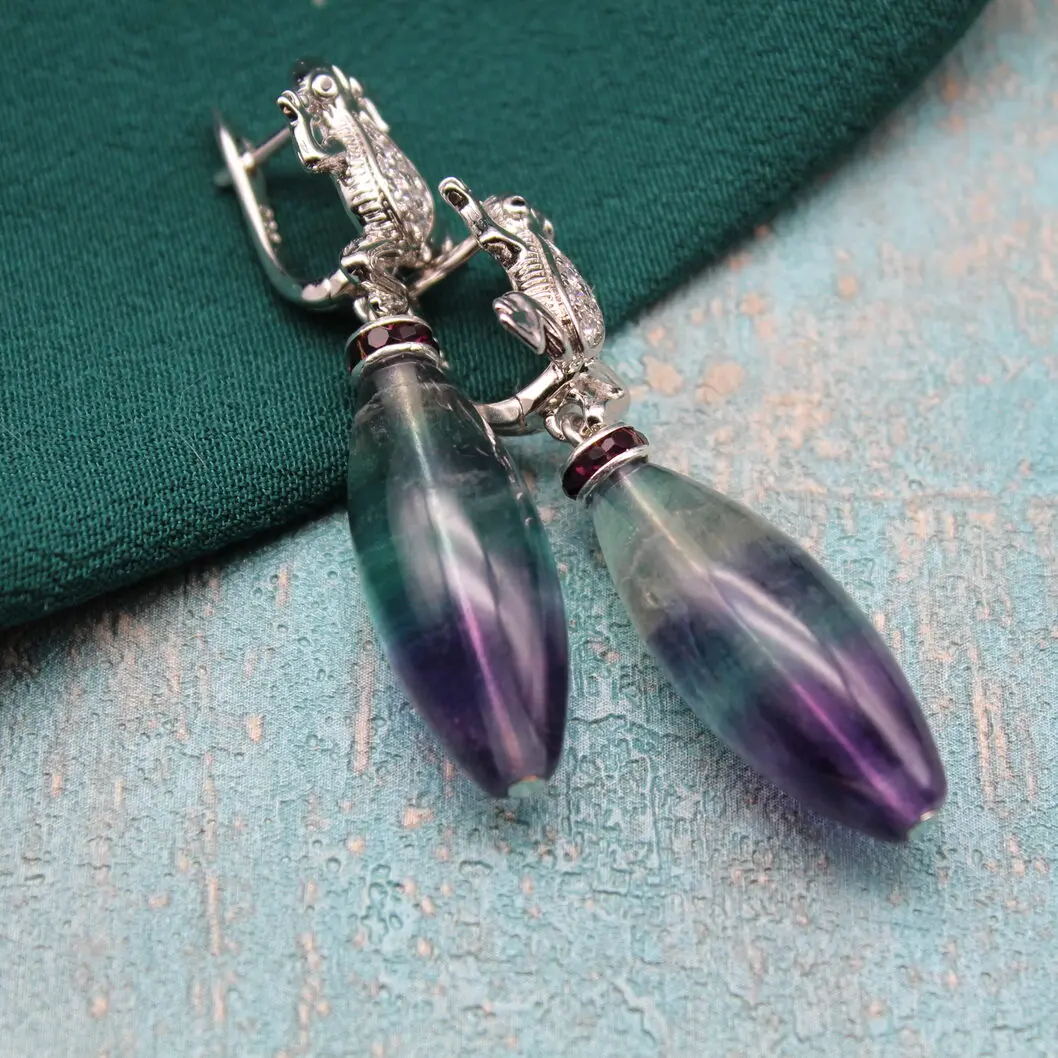 Элегантные, очень стильные серьги! Необычный природный материал с изысканными цветовыми переходами от светло-зеленого к темно-лиловому!