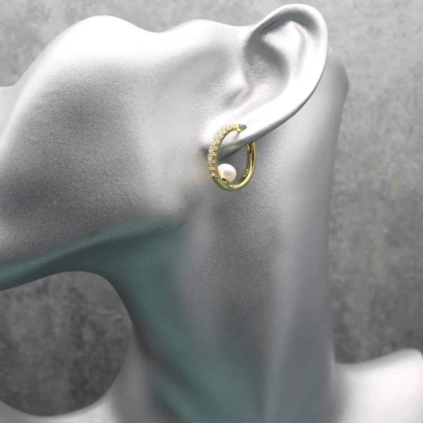 Серьги из натурального жемчуга, серебра с позолотой 24К и родиевым покрытием и прозрачными цирконами.