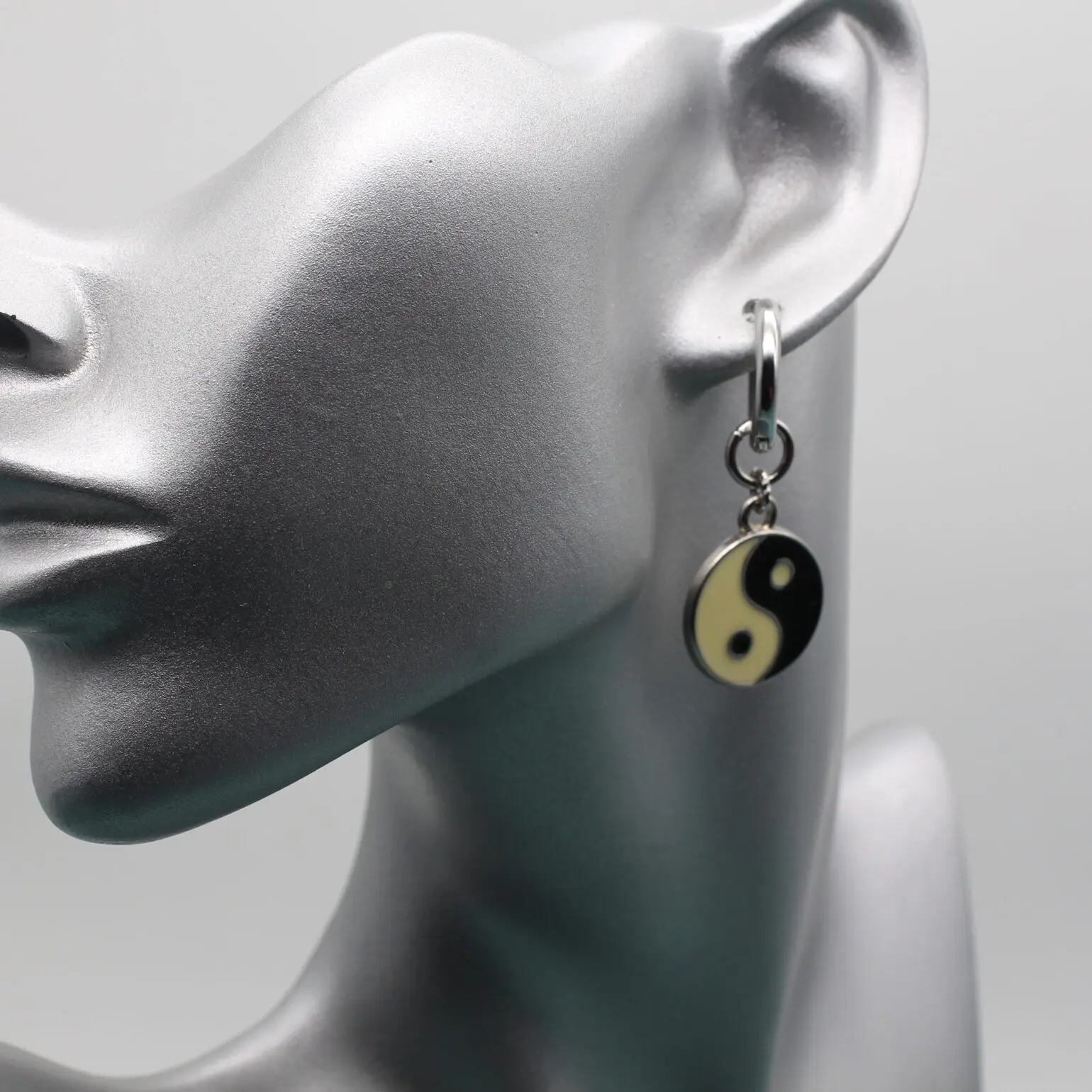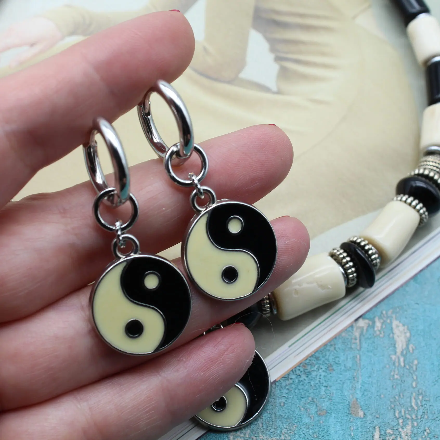 Серьги-трансформеры из посеребренного 925 и родированного сплава (р-ка Корея), подвескок с эмалью Инь-Янь.