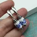 Серьги из зеленого кошачьего глаза, посеребрение 925.