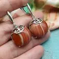 Серьги из натурального тигрового глаза, посеребренной фурнитуры 925.