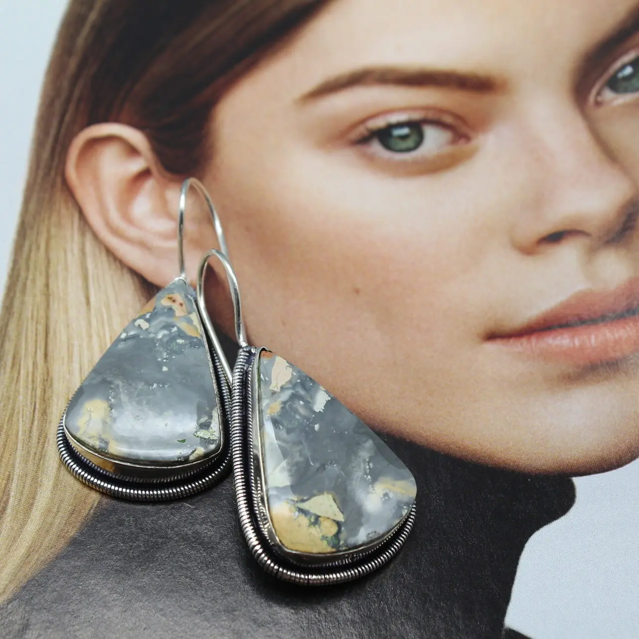 Серьги из океанической яшмы (Мексика), серебра 925 пробы.