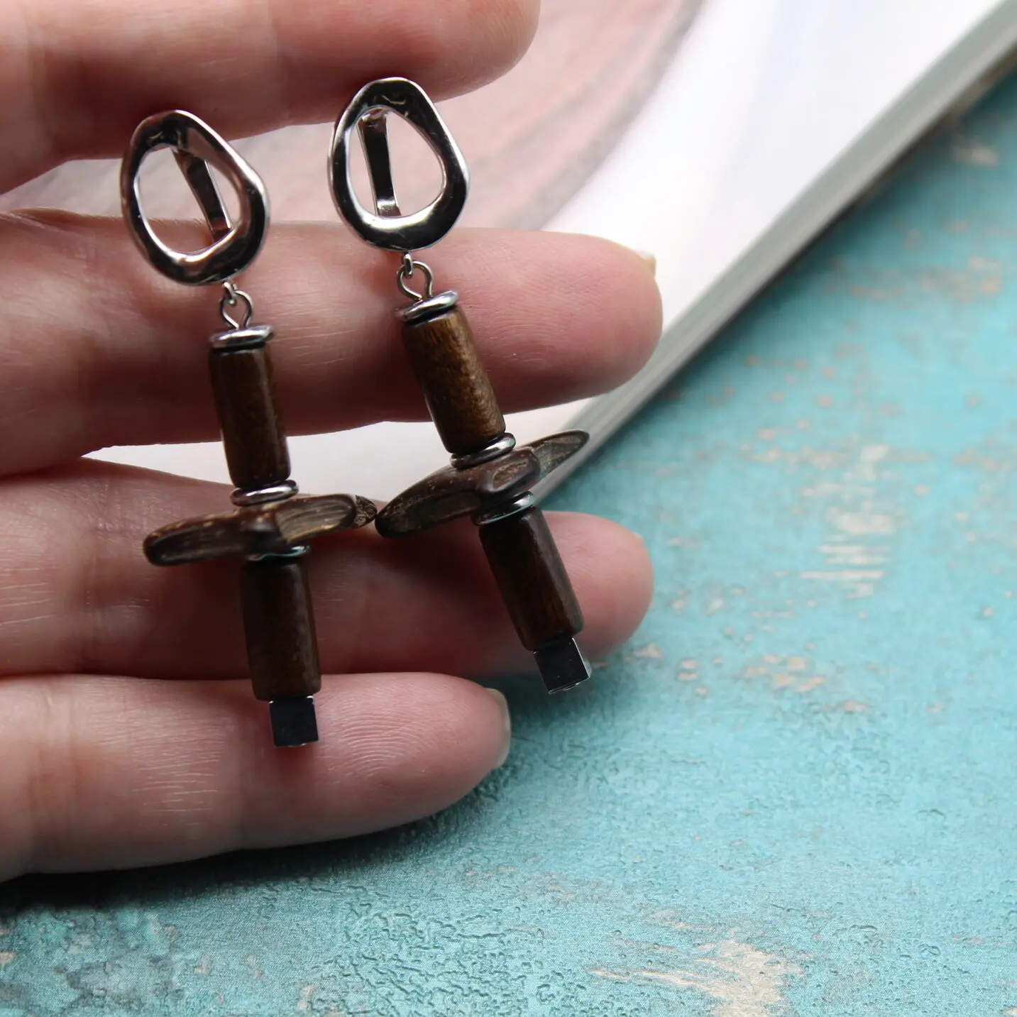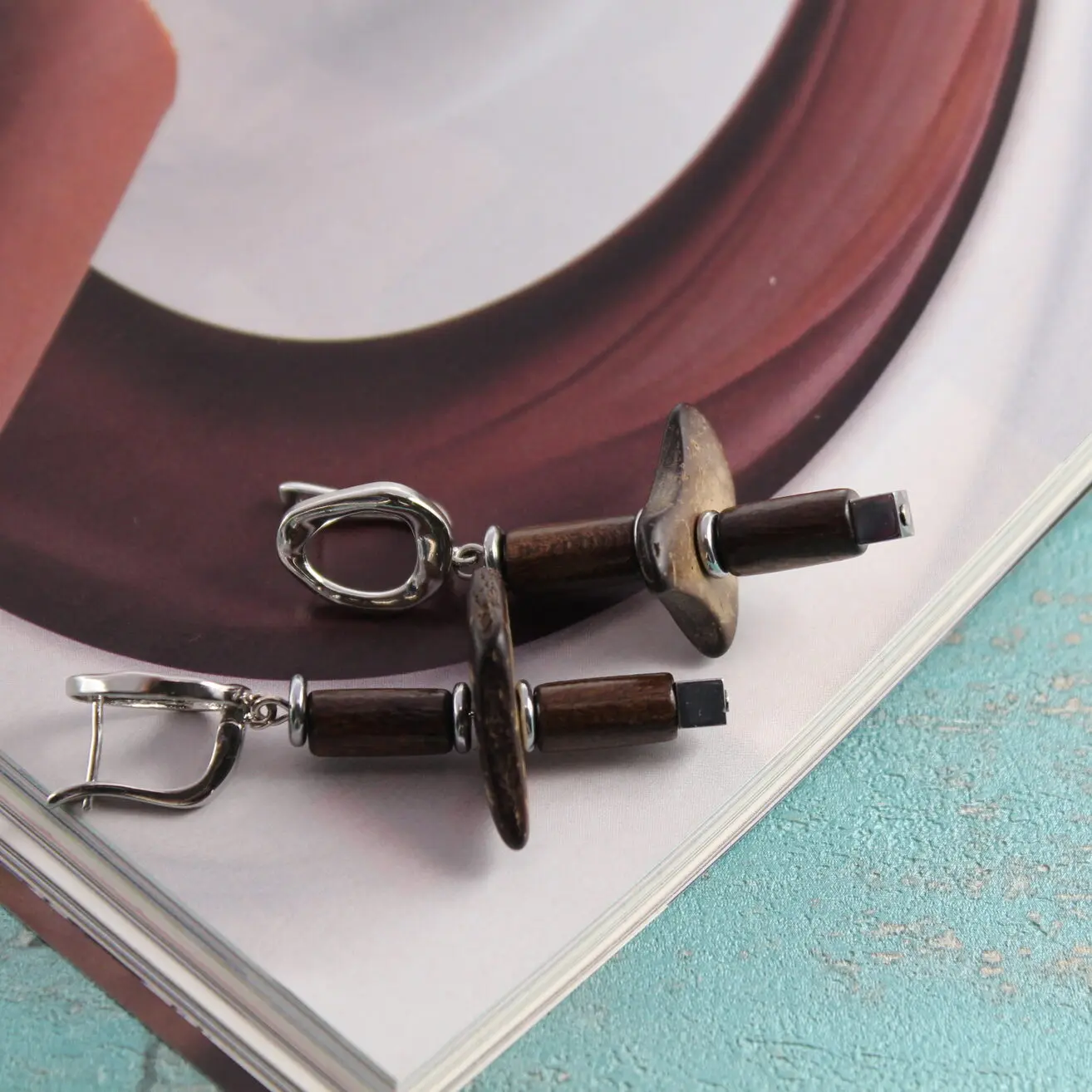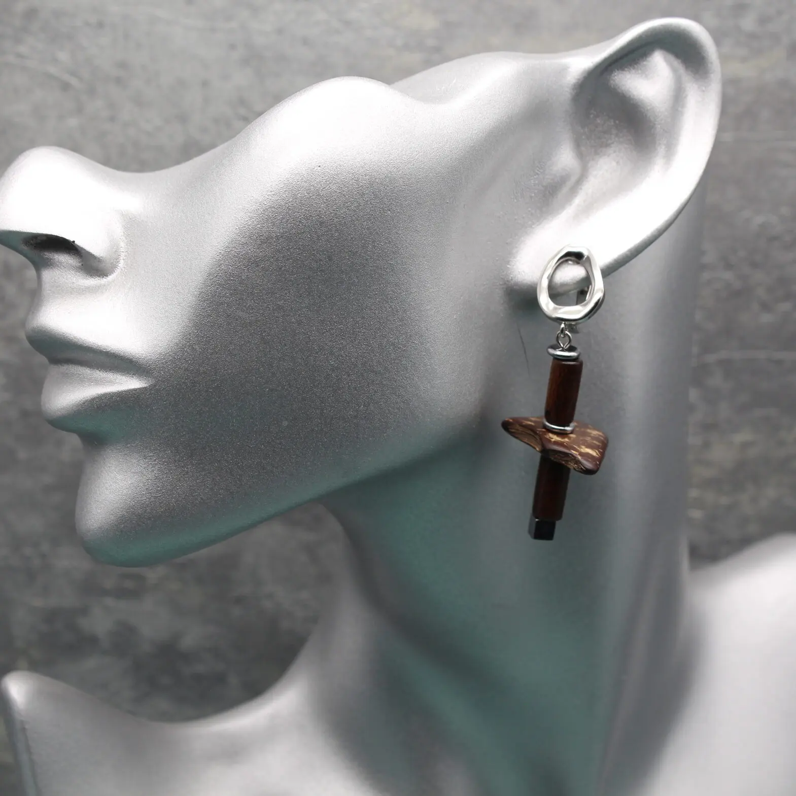 Серьги из натурального кокоса, дерева, гематита.