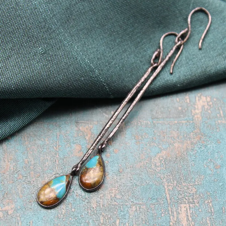 Серьги из натуральной бирюзы в породе (штат Аризона, США), серебра 925 пробы.