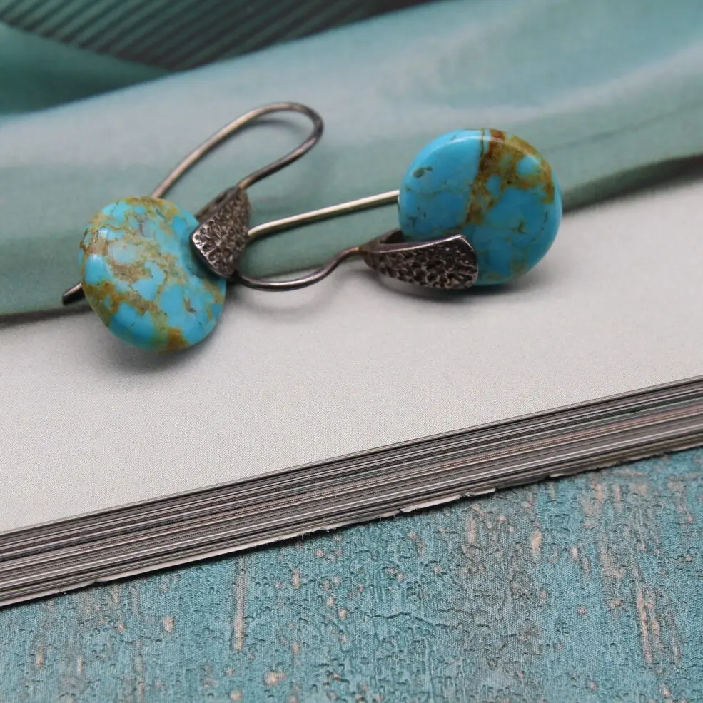 Очень элегантные, оригинальные серьги из природных срезов натуральной аризонской бирюзы!