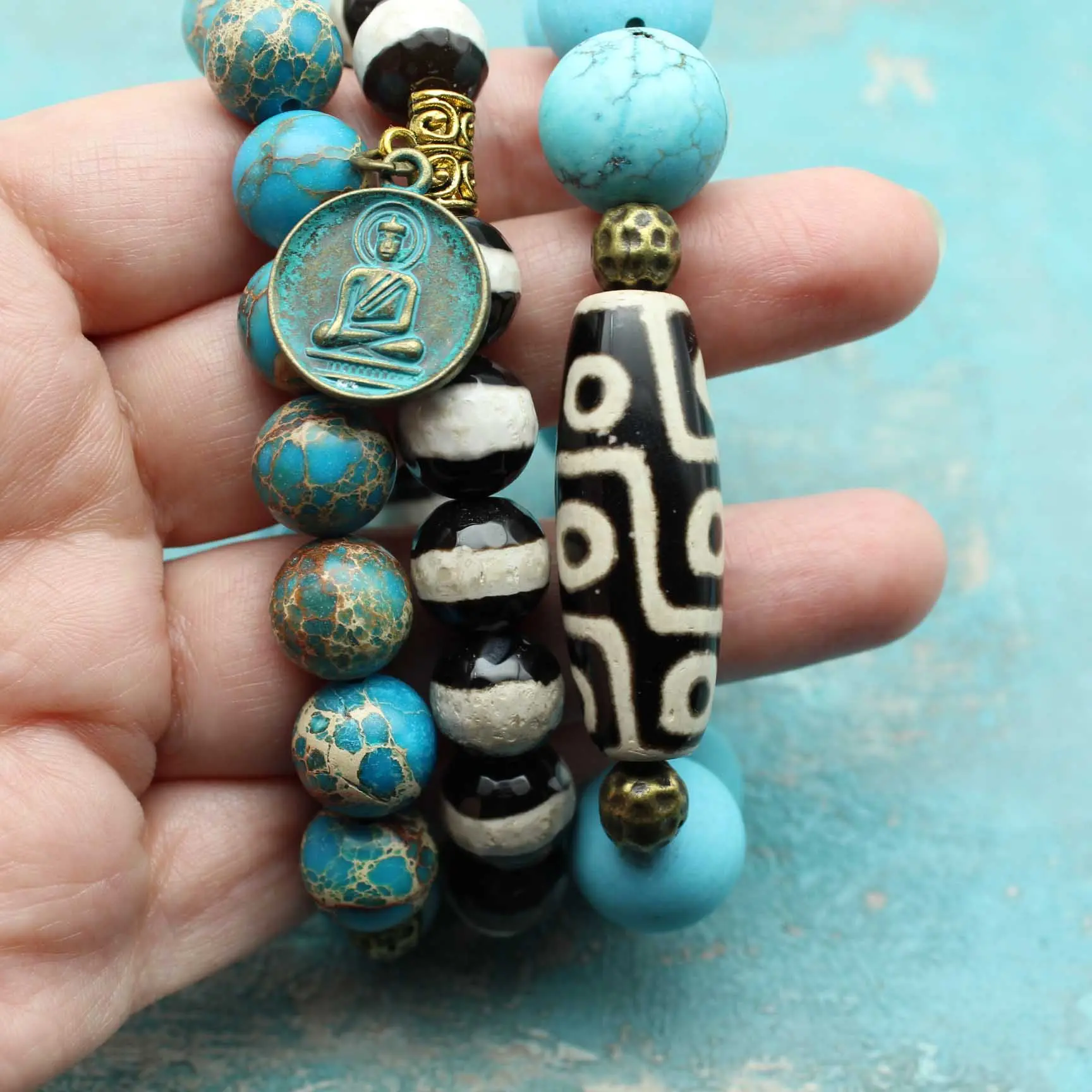 Браслеты из бирюзы (прессованной), агата дзи, варисцита, бусины дзи 9 глазка, бронзовой фурнитуры.