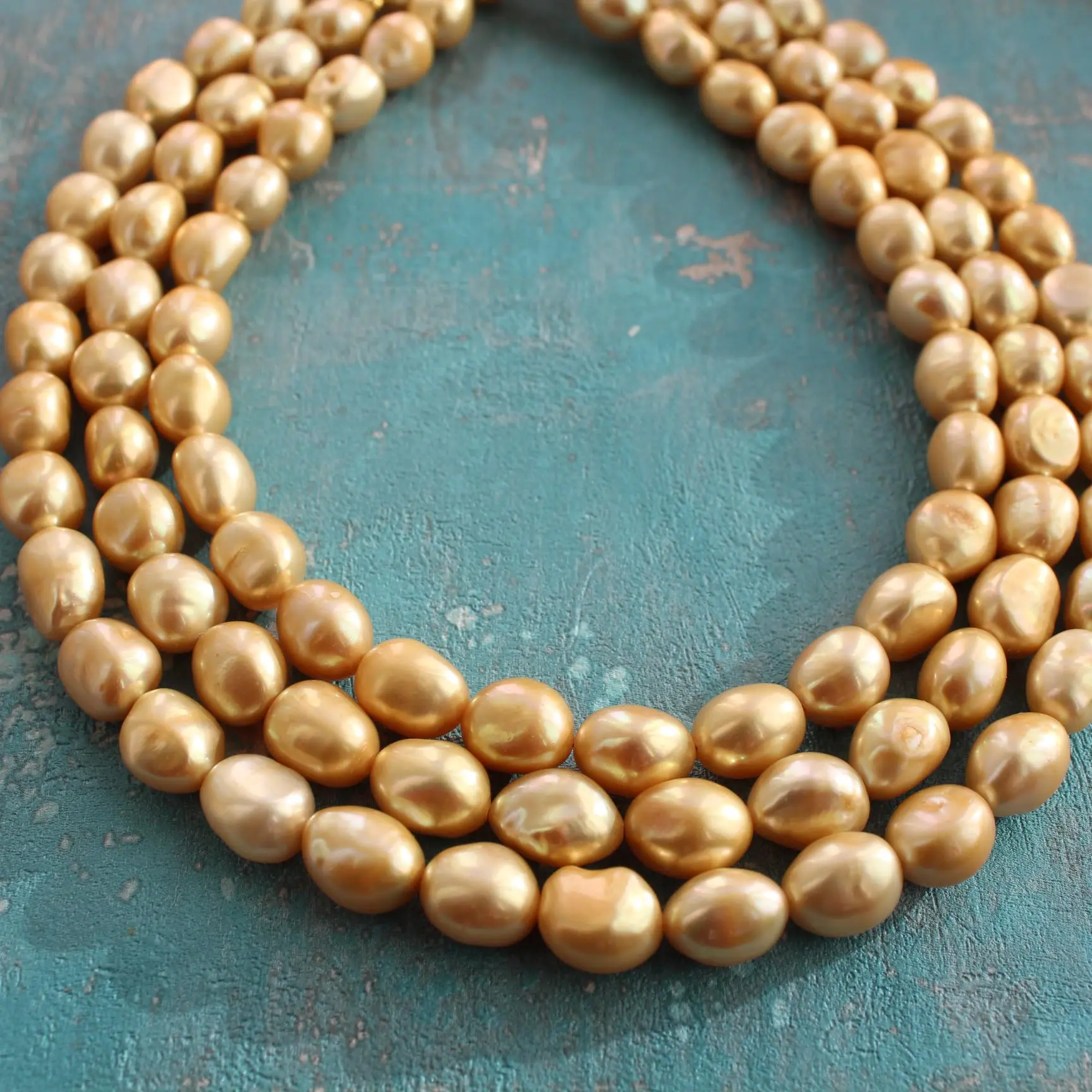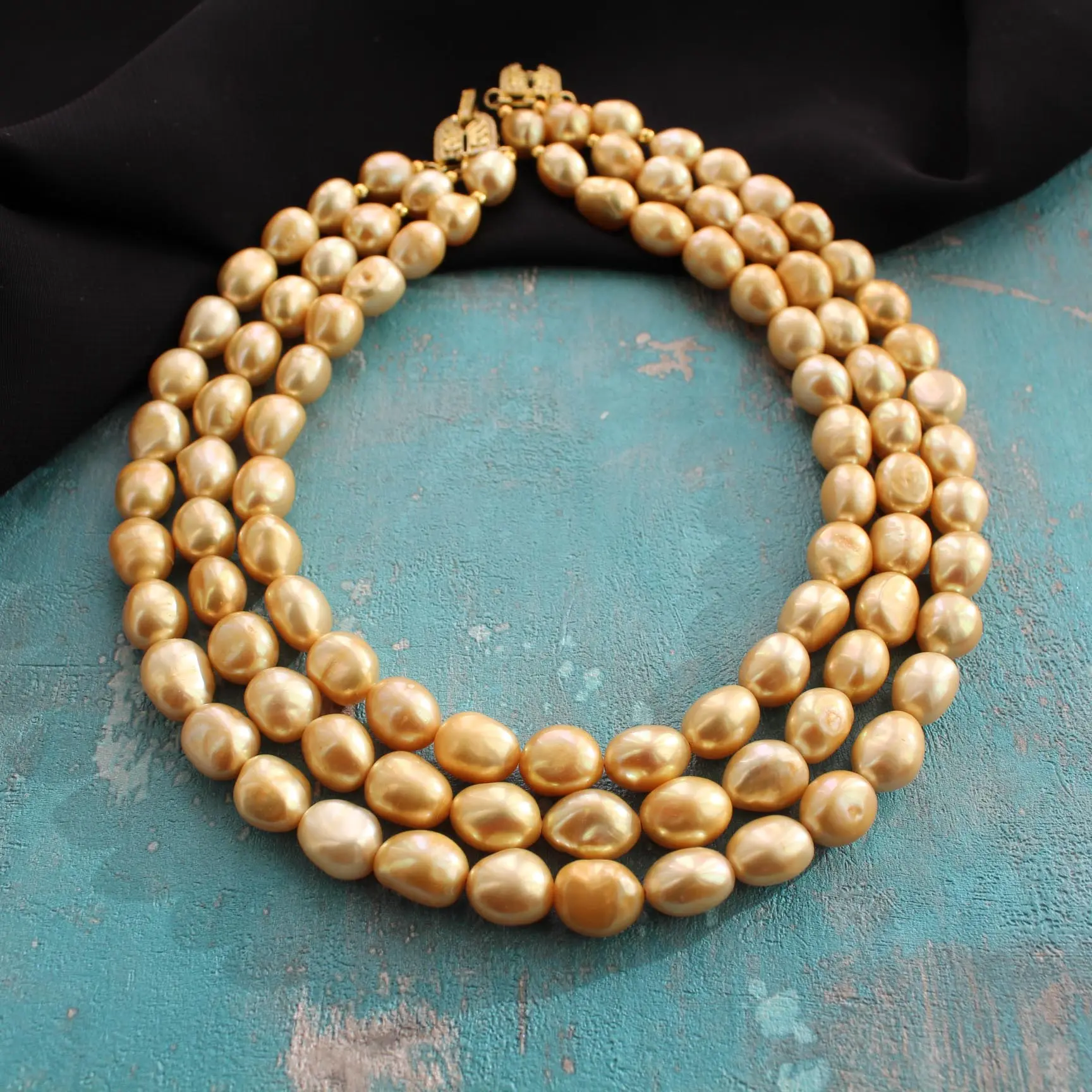 Исключительное качество и потрясающий золотистый оттенок жемчужин смотрится изумительно, словно золотые слитки!